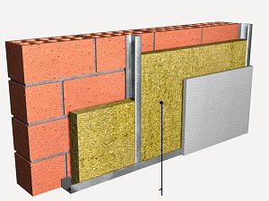 Aislamiento térmico entre los montantes de la estructura portante del trasdosado autoportante de placas, formado por panel semirrígido de lana de roca volcánica Sonorock Plus "ROCKWOOL", según UNE-EN 13162, no revestido, de 80 mm de espesor, resistencia térmica 2,4 m²K/W, conductividad térmica 0,033 W/(mK), colocado entre los montantes de la estructura portante. | ||